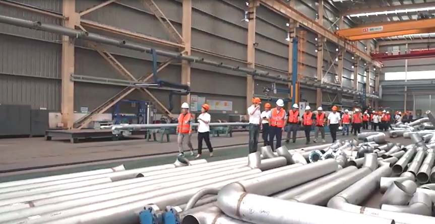 下午與會人員參觀了金童裝備公司的管道預(yù)制自動化生產(chǎn)線和二期新石化高端裝備研發(fā)和制造項目建設(shè)工地,并對中石油廣西乙烯項目在制的合金鋼預(yù)制管道進行了材料追溯審核和質(zhì)量控制的檢查和交流。