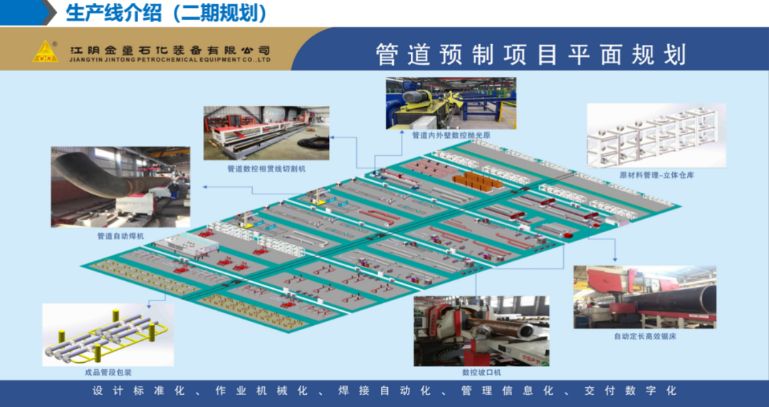 作為管道預(yù)制工廠化的實施主體之一,金童裝備公司三年前進行了戰(zhàn)略布局,相繼投入4億元,規(guī)劃建設(shè)了占地面積近40000㎡的智能制造示范性工廠,并計劃于2024年底全面建成,屆時集設(shè)計標(biāo)準(zhǔn)化、采購集約化、作業(yè)機械化、焊接自動化、管理信息化、交付數(shù)字化的先進管道預(yù)制智能制造項目將全面投用。在未來的工作中,金童裝備公司將繼續(xù)秉承“質(zhì)量第一、安全至上、創(chuàng)新驅(qū)動、綠色發(fā)展”的理念,以本次中期驗收為契機,進一步總結(jié)經(jīng)驗、查找不足、明確方向、制定措施,繼續(xù)深化“六化”建設(shè)在管道預(yù)制工廠化領(lǐng)域的應(yīng)用與研究,努力推動課題工作再上新臺階、再創(chuàng)新佳績,不斷提升管道預(yù)制工廠化的水平,努力打造成為行業(yè)內(nèi)的標(biāo)桿企業(yè)。